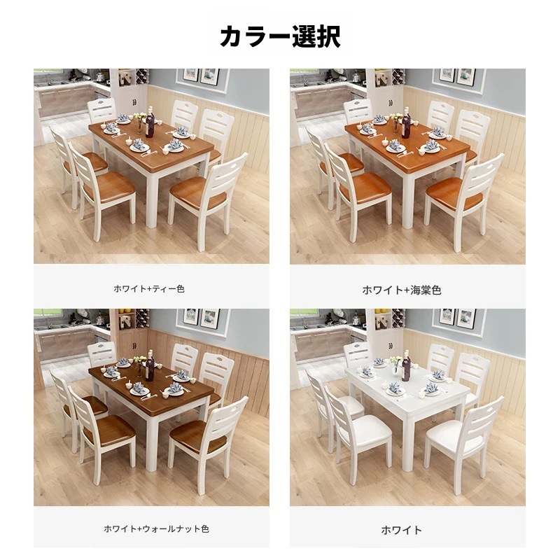 クリーミーホワイトの無垢材ロックボードダイニングテーブル - 欧風デザイン、折りたたみ可能で伸縮自在!6人用の長方形テーブルと椅子のセットで、家族や友人との特別なひとときを演出します。
