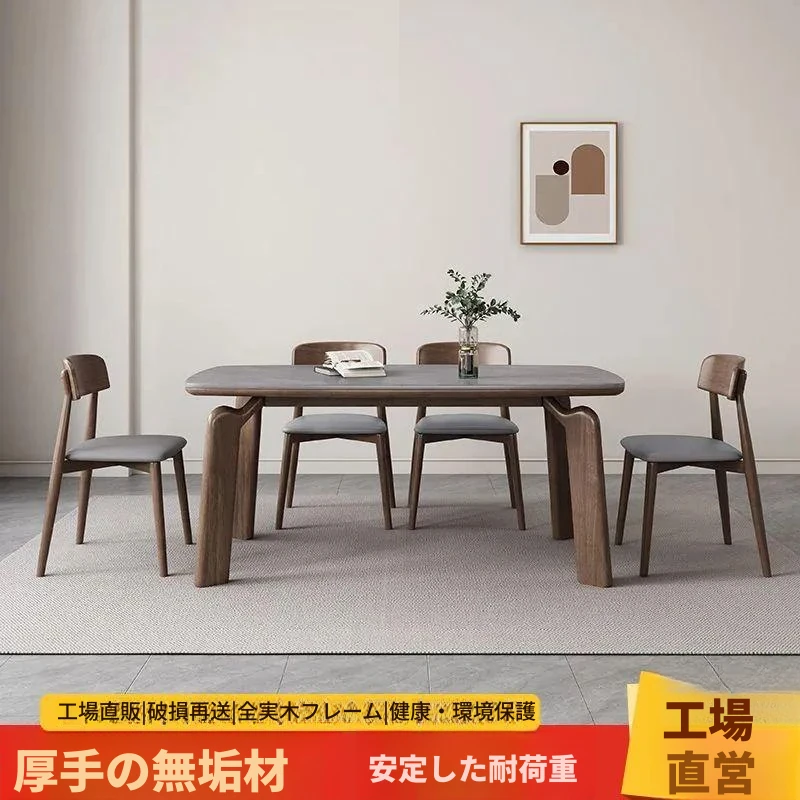 北欧風実木ロックプレートダイニングテーブル&チェアセット|小型家庭向け|モダンシンプルでラグジュアリーな長方形テーブル!快適な食事空間を演出します。