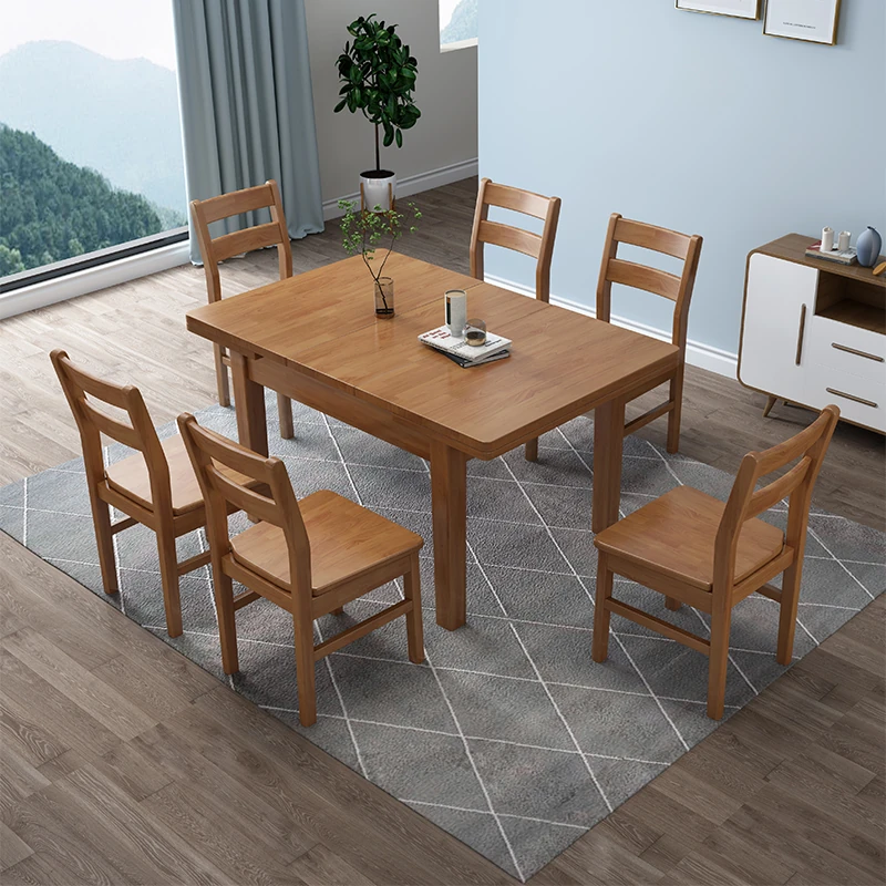 全実木製ダイニングテーブル&チェアセット|モダンでシンプルな6人用長方形|伸縮可能&折りたたみ式|4人用小型住宅にも最適な食卓!