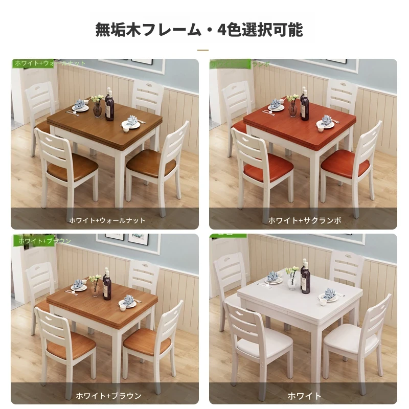 全実木のダイニングテーブル 小型住宅向け 経済的な伸縮折りたたみ長方形テーブル&椅子セット 4人用 食卓にぴったり!