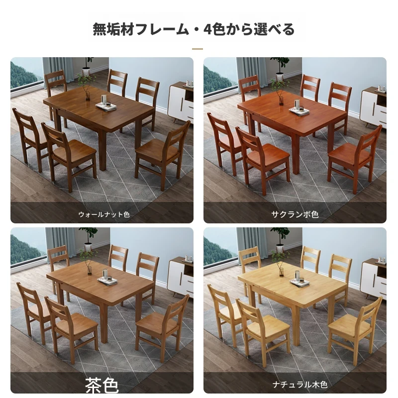 現代的シンプルな全木製ダイニングテーブル&チェアセット!伸縮可能な折りたたみ式で、小さなスペースにも最適。4人から6人まで対応、お食事をもっと楽しく!