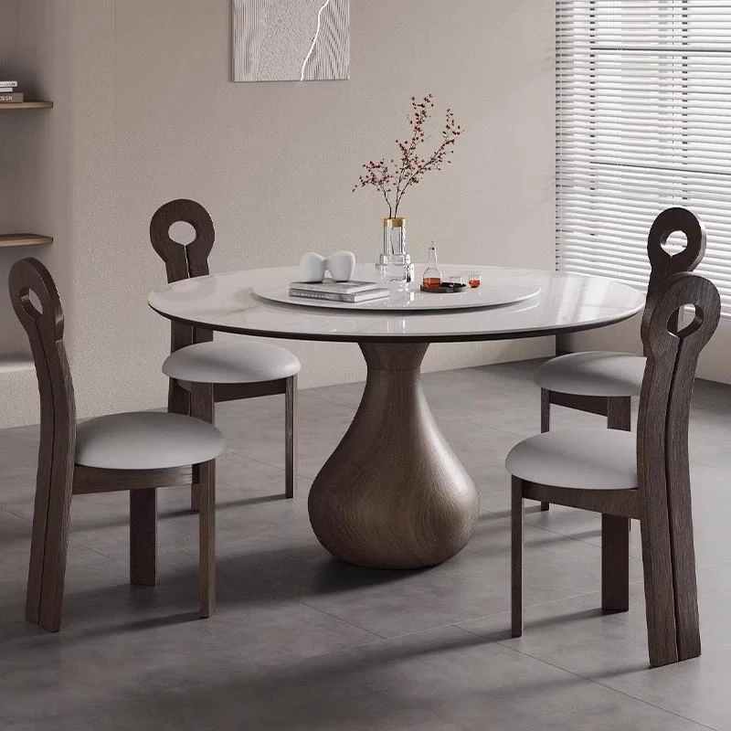 新中式スタイルのラウンド岩板ダイニングテーブル - モダンでシンプル、軽やかな贅沢感。家庭用やホテルにもぴったりの多機能収納付きで、食事の時間を特別に演出します。