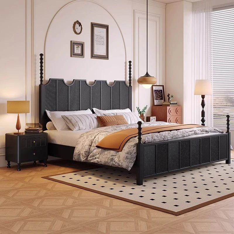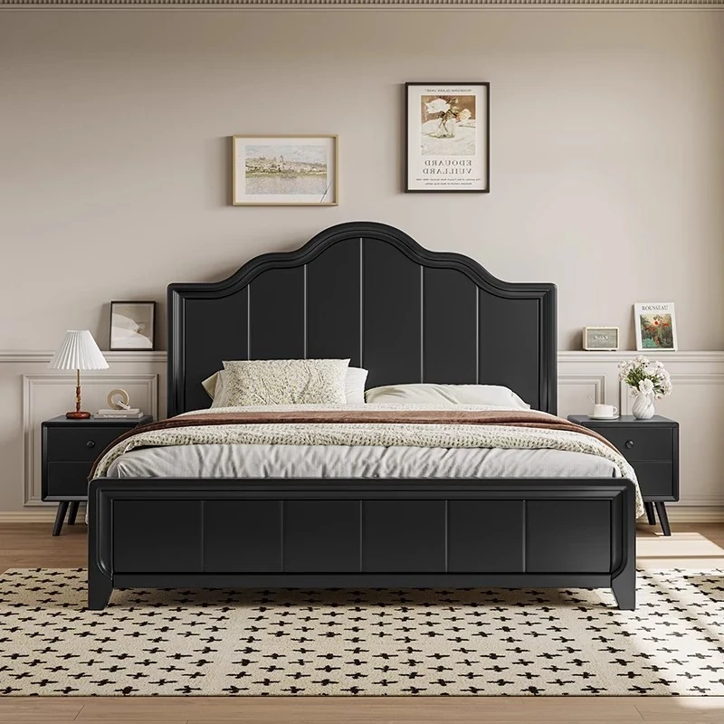 アメリカンスタイルのラグジュアリーなヴィンテージベッド、1.5mと1.8mのブラック高品質ダブルベッド。フランス風の大型ストレージベッドで、新婚生活にぴったりの特別な一台!