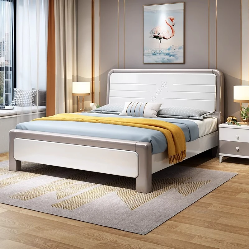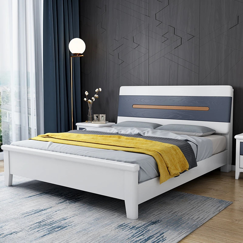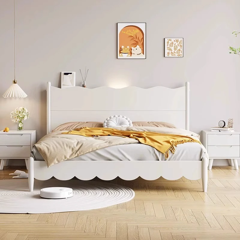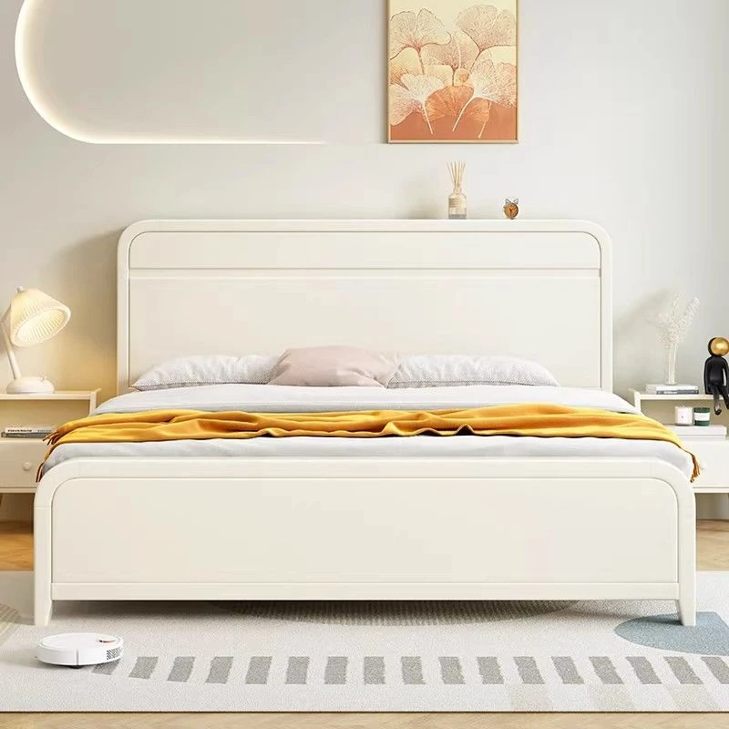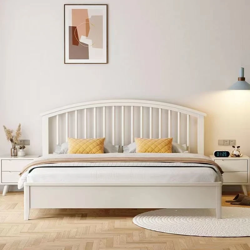北欧風ホワイトラグジュアリー無垢材ベッド 1.8m ダブルベッド 1.2m モダンシンプル 小型住宅向け シングルマスターベッド