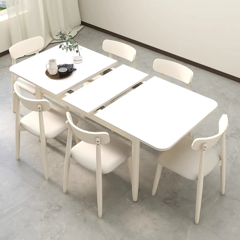 Creamy Rock Plate Dining Table - Versatile Square & Round Design, Expandable for Small Spaces, Modern Minimalist Style, Perfect for Home Use with Matching Chairs.
