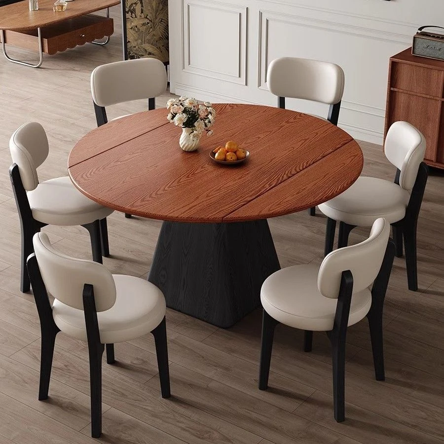 Modern French Solid Wood Dining Table with Expandable Design - Versatile Round and Square Foldable Table for Small Spaces, Perfect for Home Use