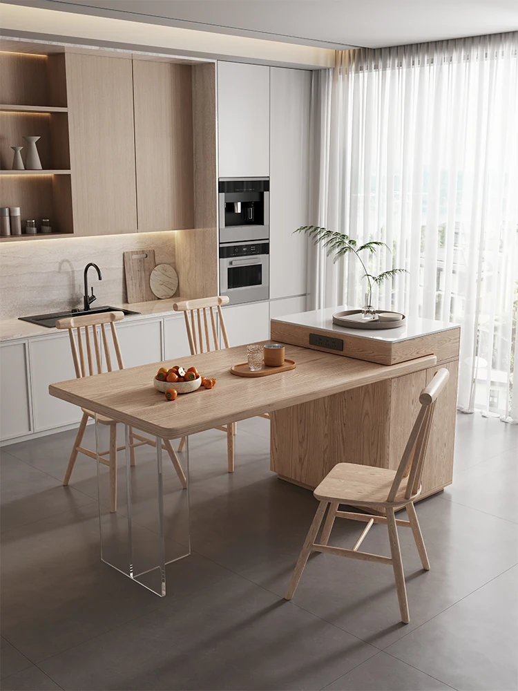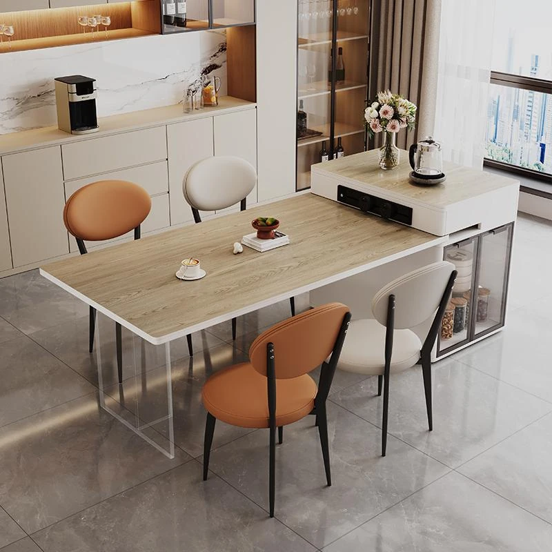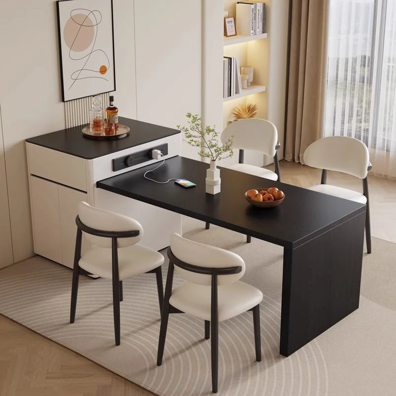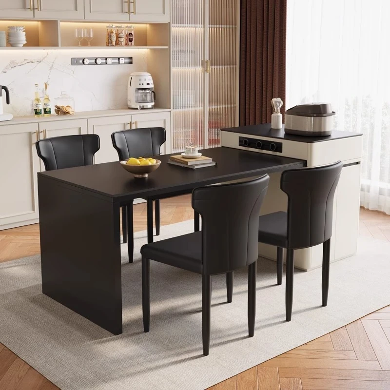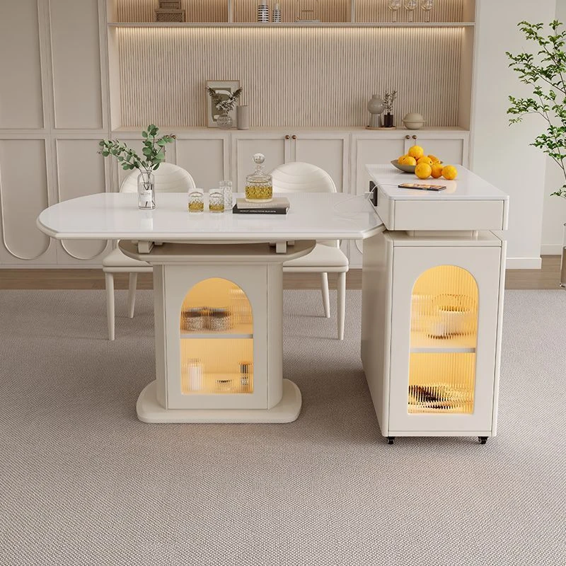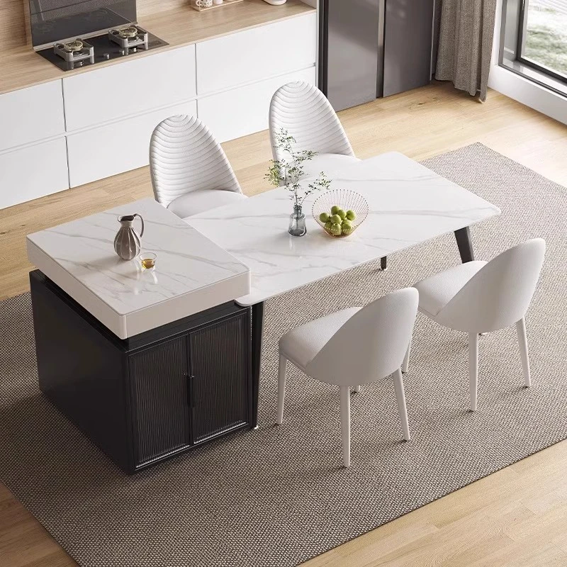 Modern Minimalist Luxury Expandable Dining Table with Integrated Island Design - Versatile Rock Plate Dining Table for Small Spaces