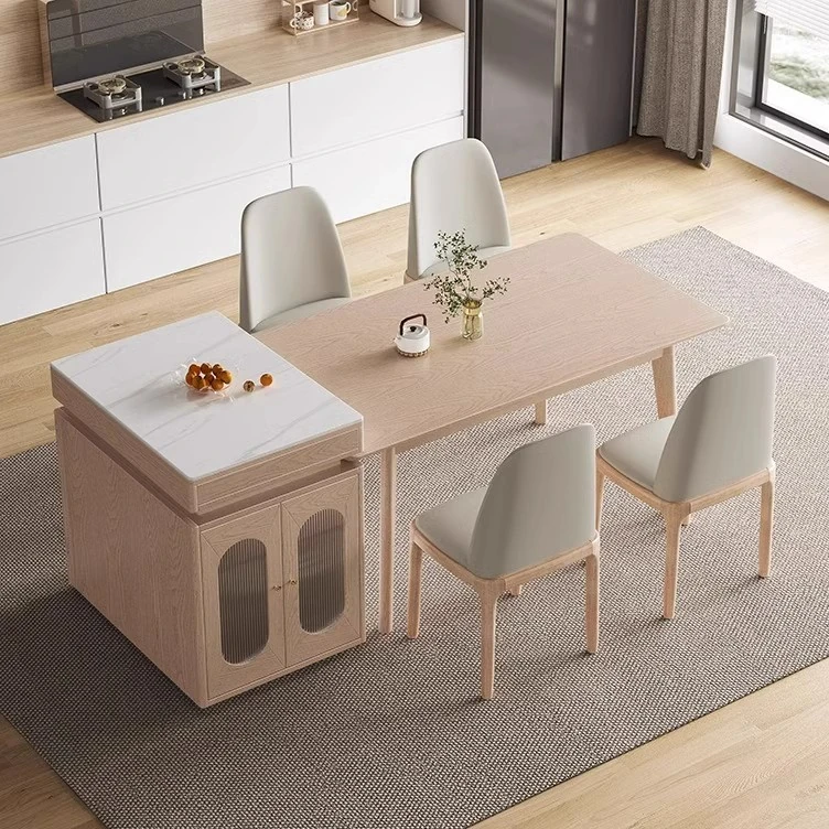 Modern Minimalist Extendable Rock Slab Dining Table for Home - Versatile Storage Tea Table in Ash Wood for Small Spaces