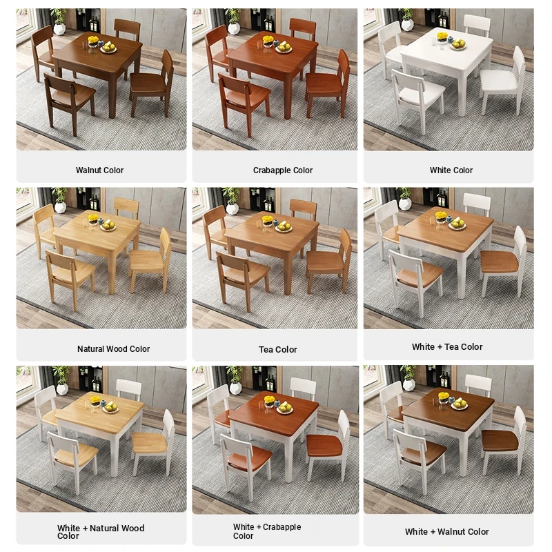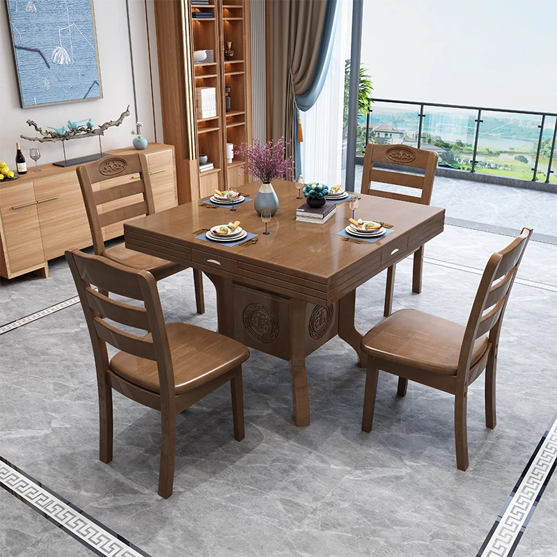 Multifunctional Chinese Solid Wood Folding Dining Table - Space-Saving Square Table for 6-8 People, Ideal for Small Homes, Perfect for Family Meals and Gatherings