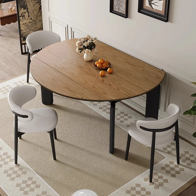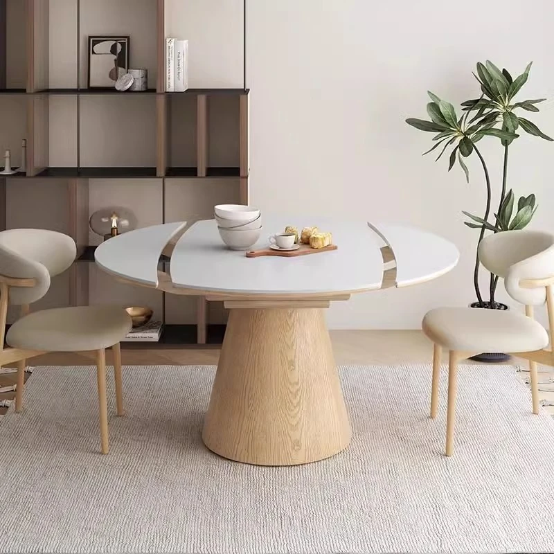 Creamy Wood Grain Expandable Round and Square Dining Table - Versatile Rock Plate Design for Small Spaces, Perfect for Home Use
