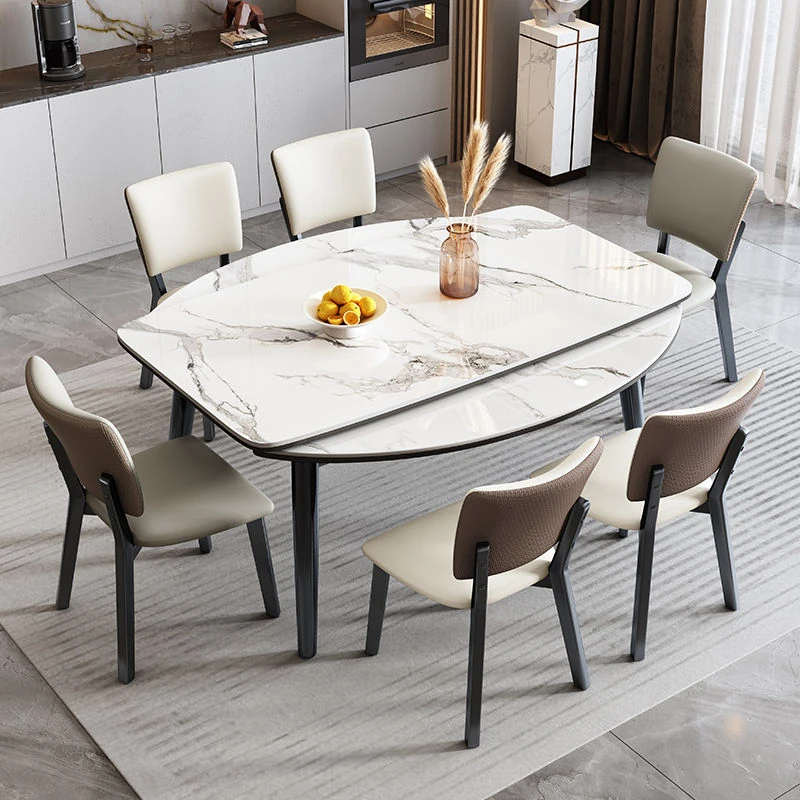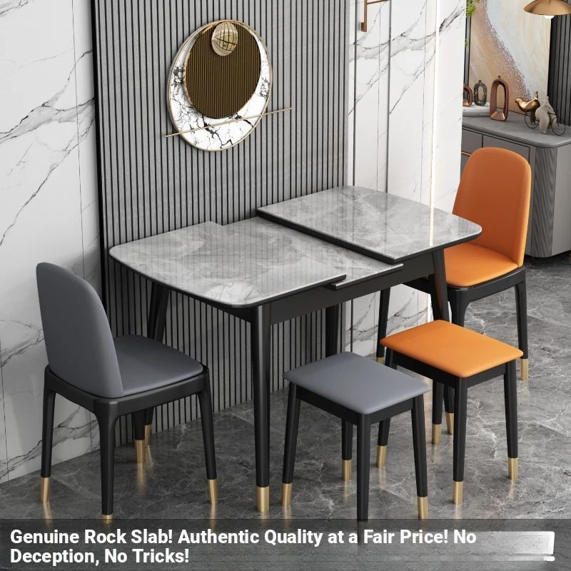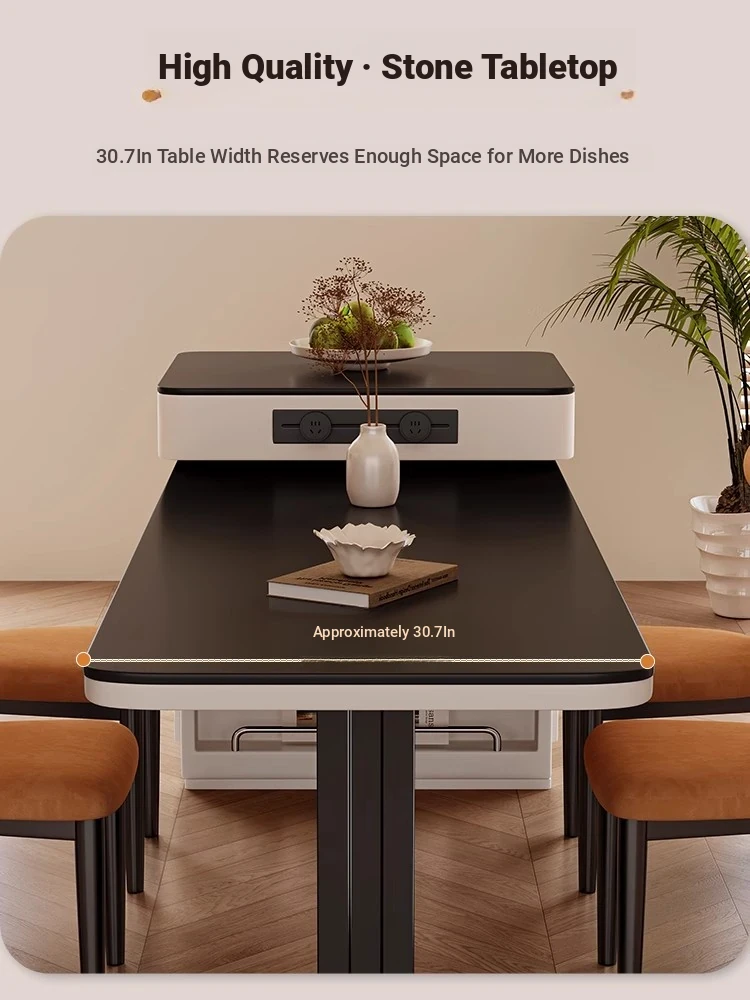 Luxury Glossy Rock Plate Dining Table - Foldable & Expandable Solid Wood with Induction Cooker, Perfect for Small Spaces, Round and Square Design for Versatile Use