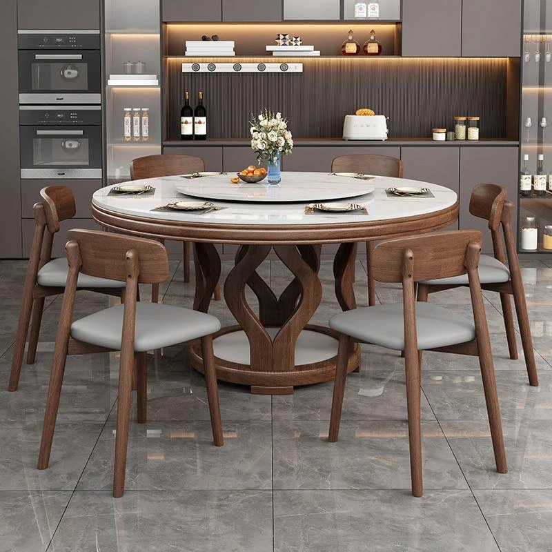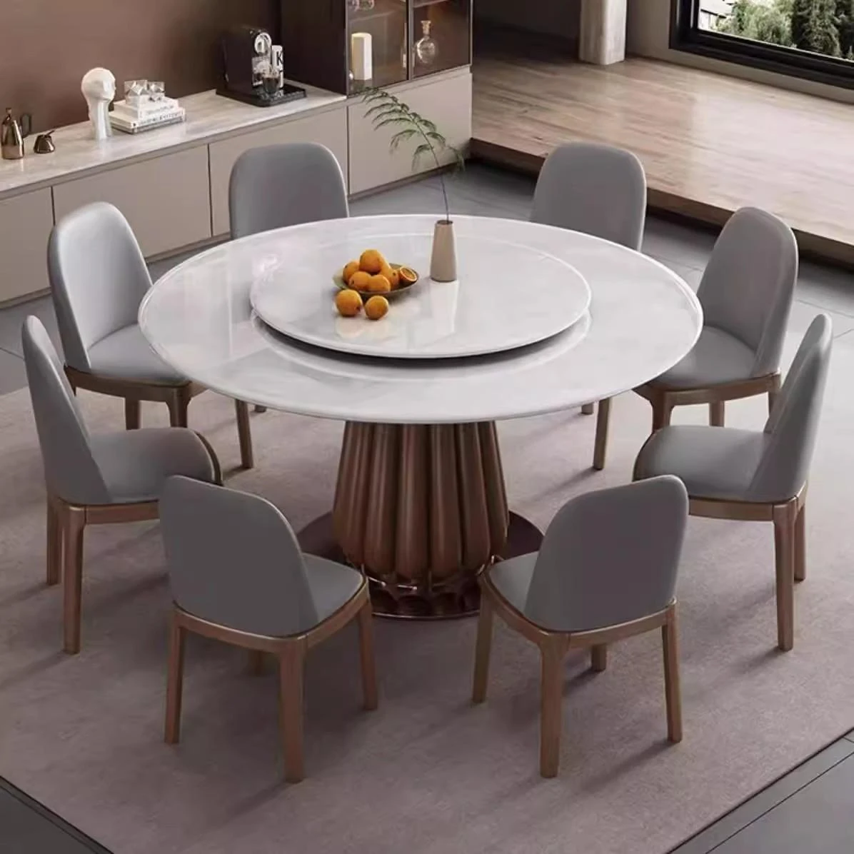 Modern Minimalist Light Luxury Microcrystalline Stone Dining Table and Chair Set - Round Solid Wood Dining Table for Small Homes, Perfect for Family Meals