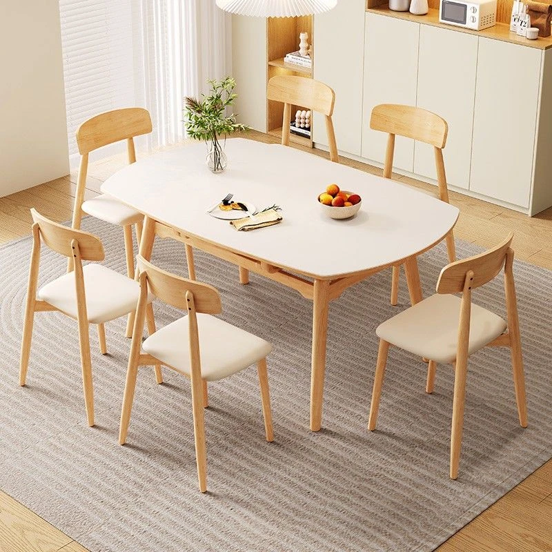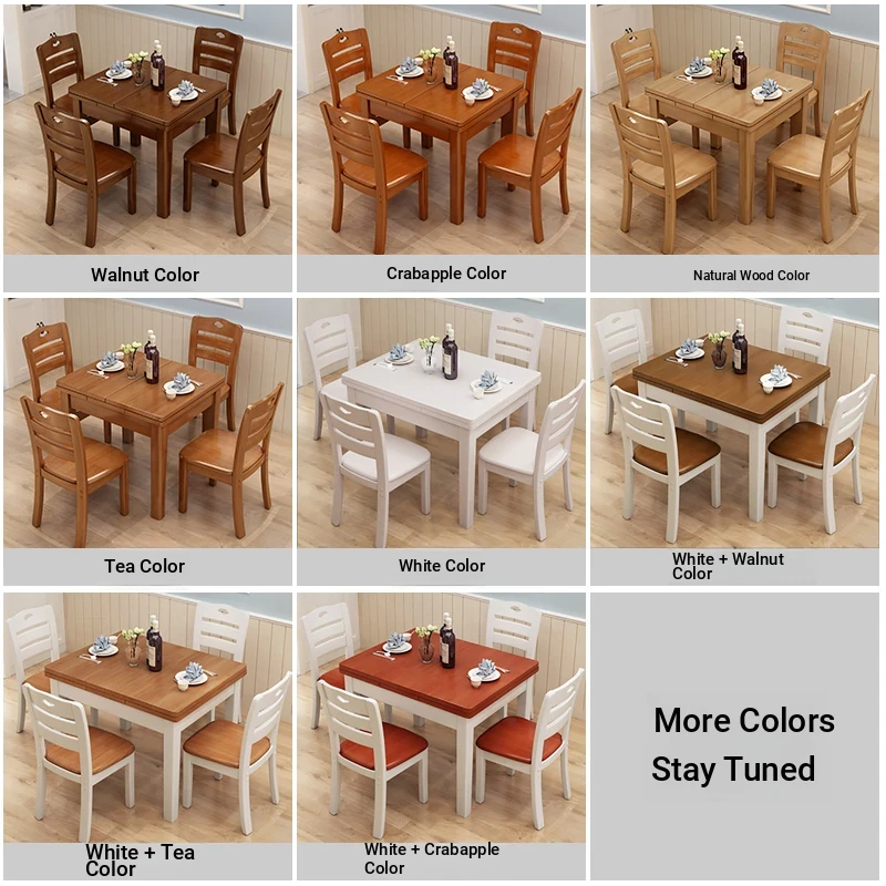 Italian Luxury Solid Wood Dining Table Set - Space-Saving, Expandable Design with Rock Plate for Hot Pot and Induction Cooker - Perfect for Small Homes