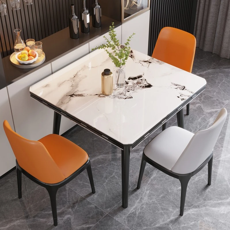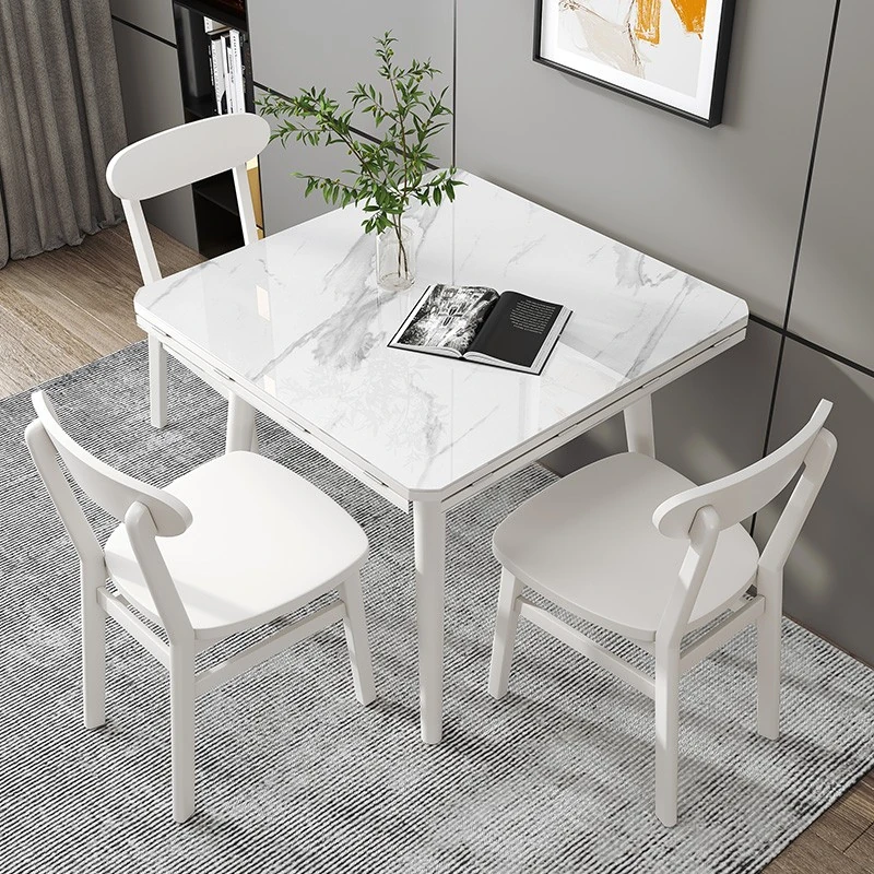 Nordic Style Glossy Rock Panel Folding Dining Table - Versatile Square and Round Design for Small Spaces, Includes Induction Cooker - New Arrival!