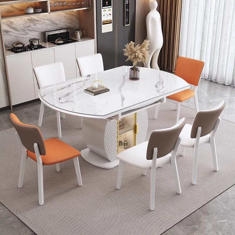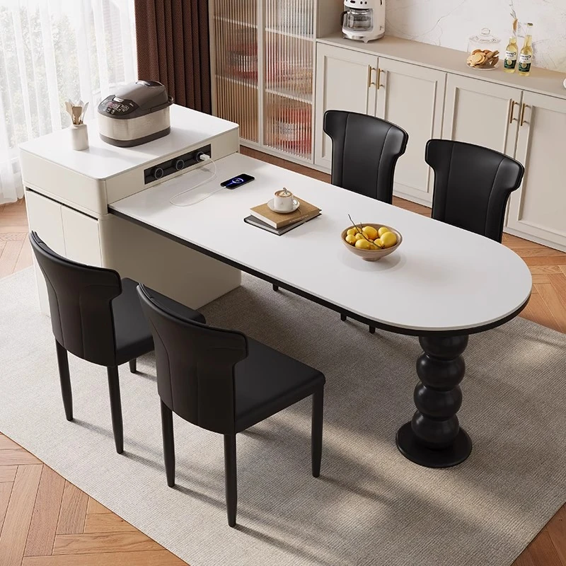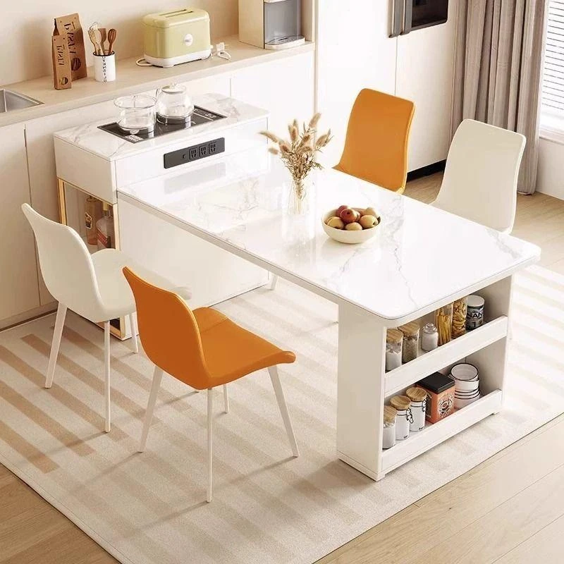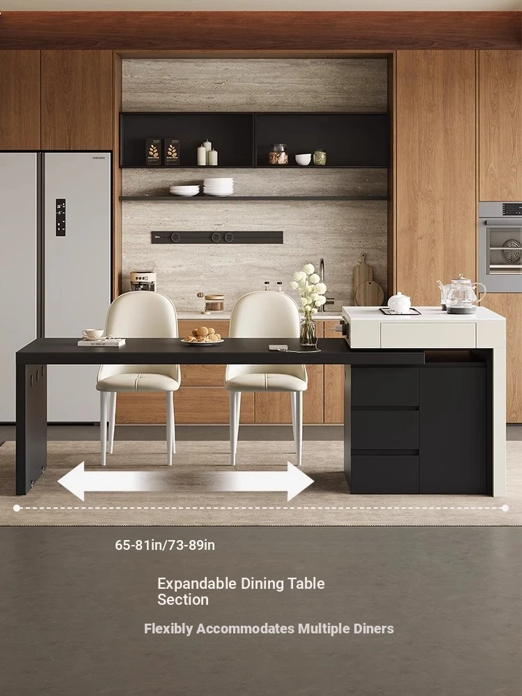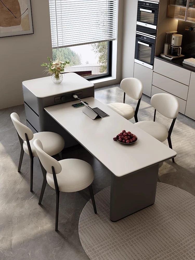 2025 New Modern Minimalist Expandable Rock Plate Island Dining Table Set with Storage - Perfect for Home Use!
