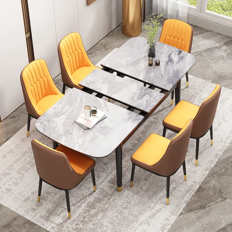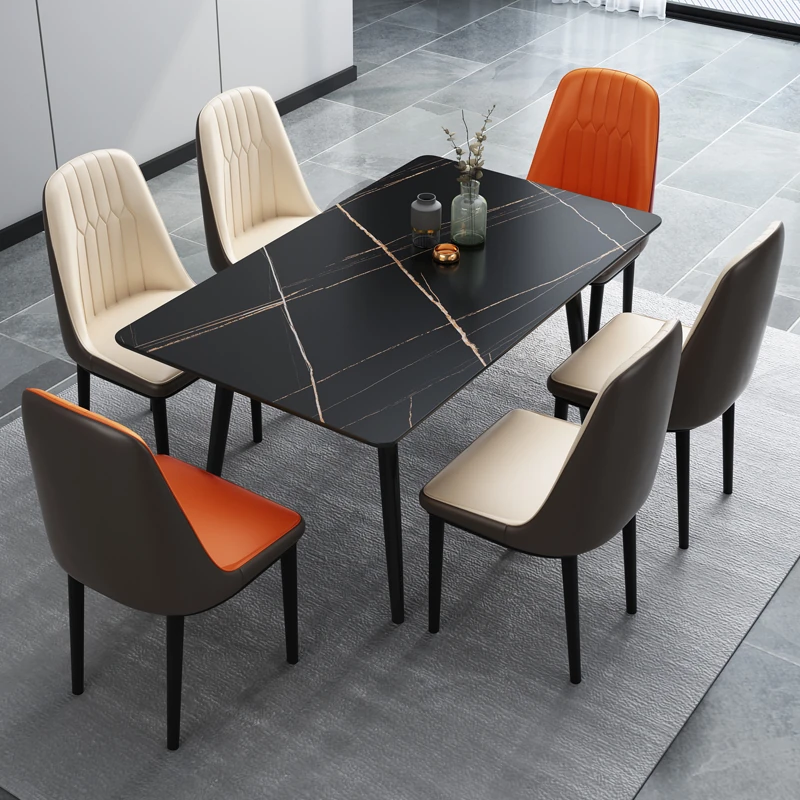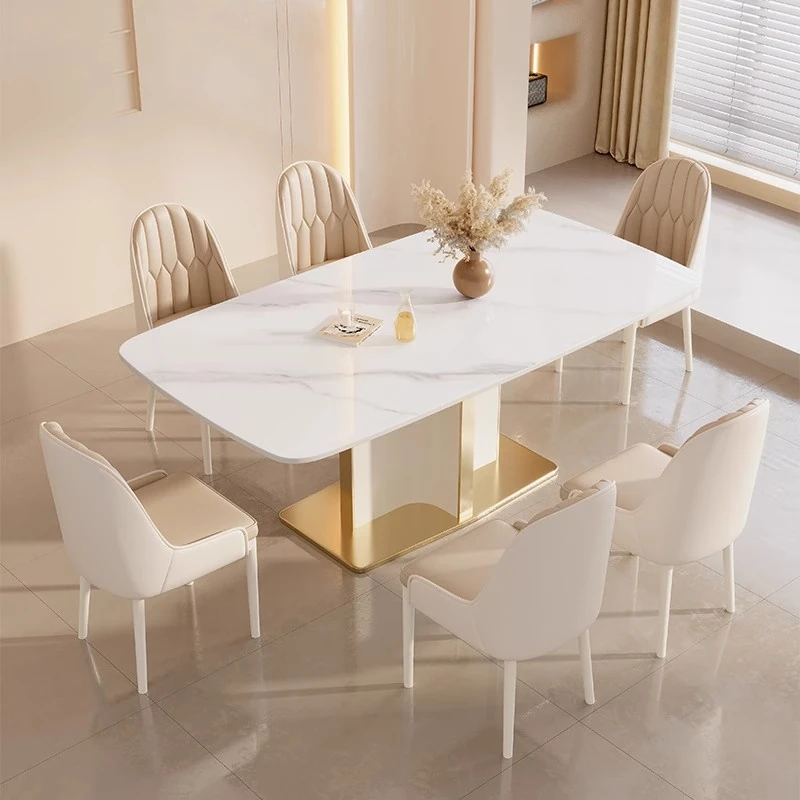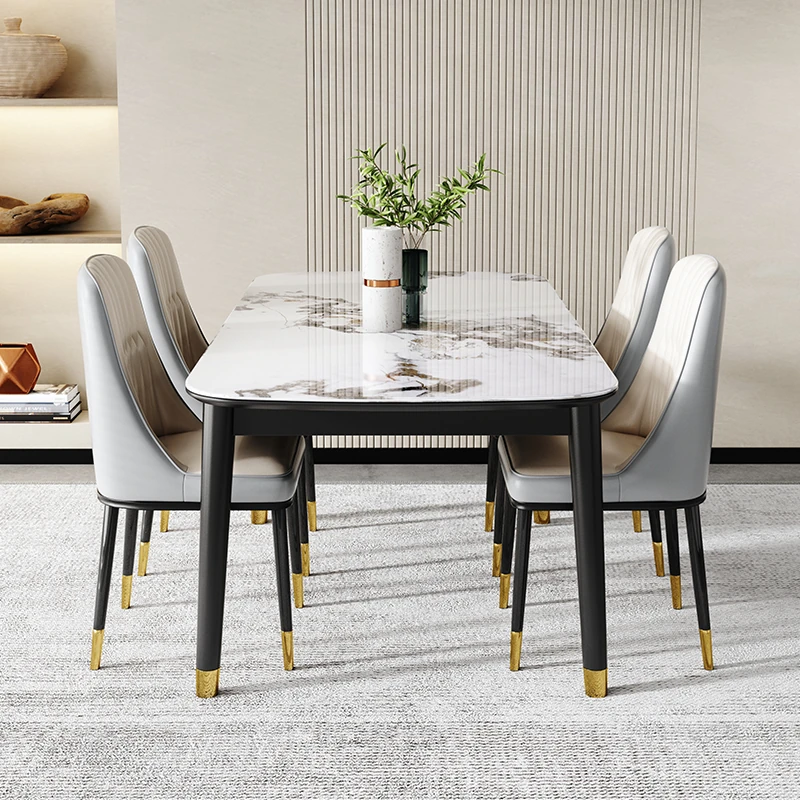 Modern Minimalist Nordic Rock Slab Dining Table Set with Italian Marble - Perfect for Small Spaces, Featuring a Rectangular Design for Chic Home Dining.