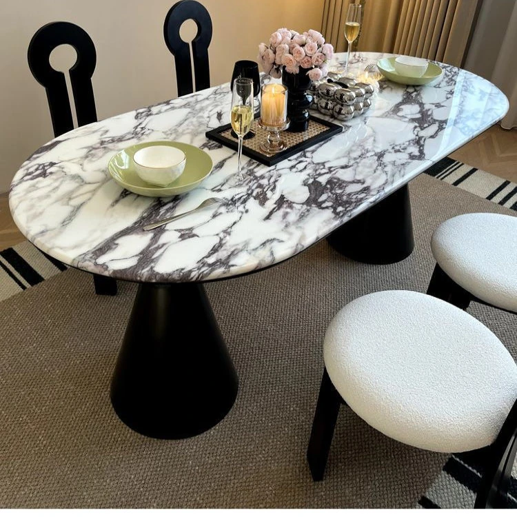 Bvlgari Marble Dining Table - French Vintage Oval Design for Small Spaces, Trendy Minimalist "Holy Grail" Dining Table for Home Use