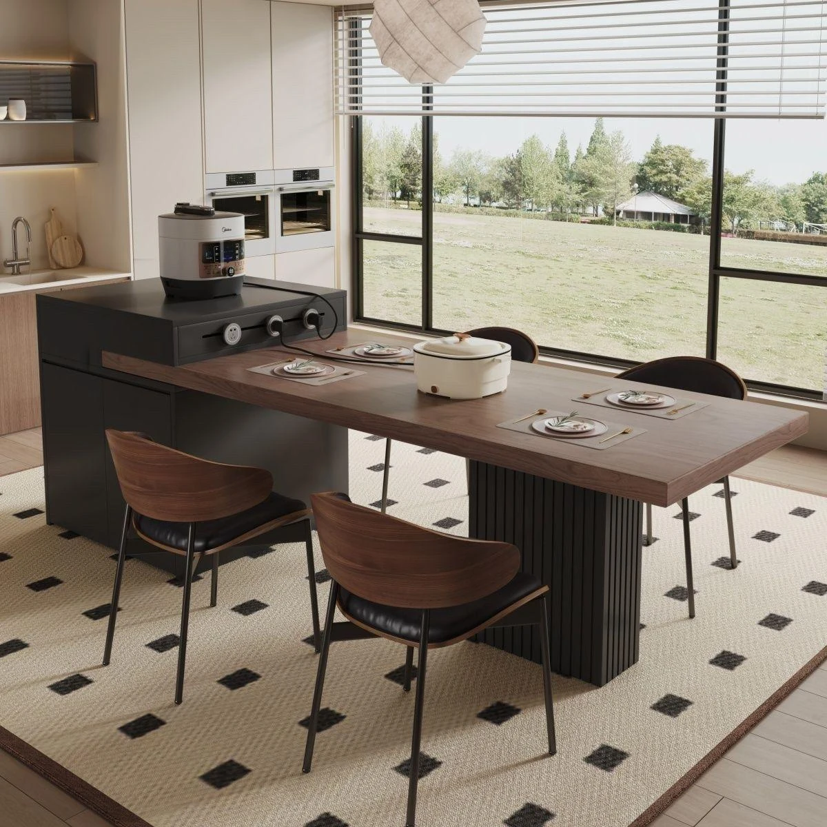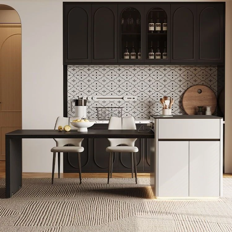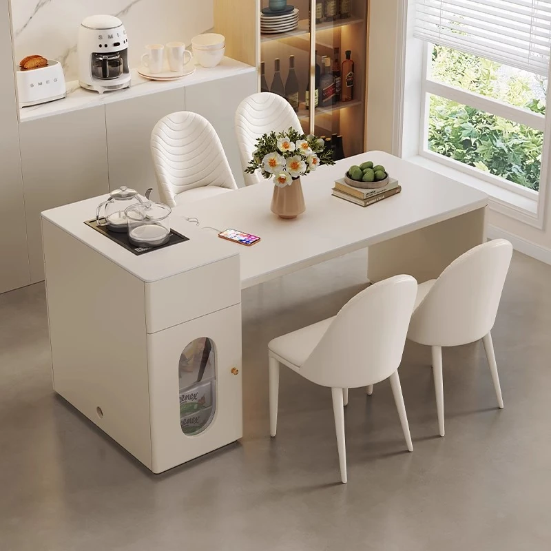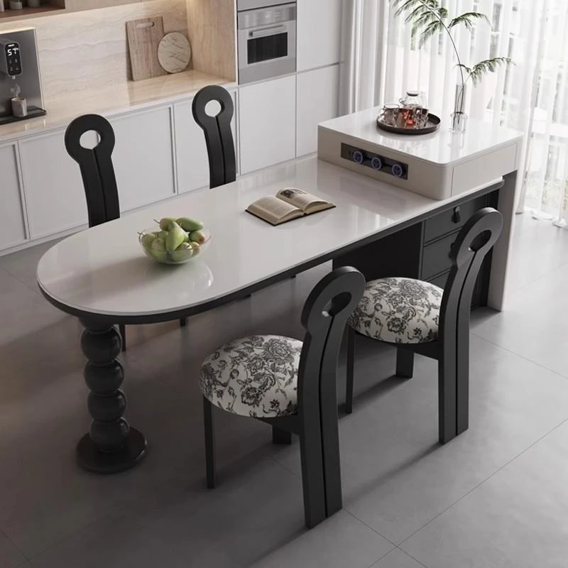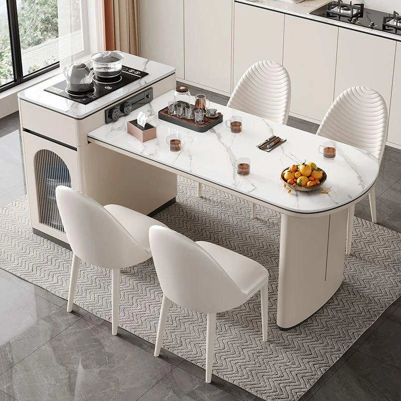 Modern Minimalist Expandable Kitchen Island Dining Table 2025 New Rock Plate Home Storage Island Table and Chair Set