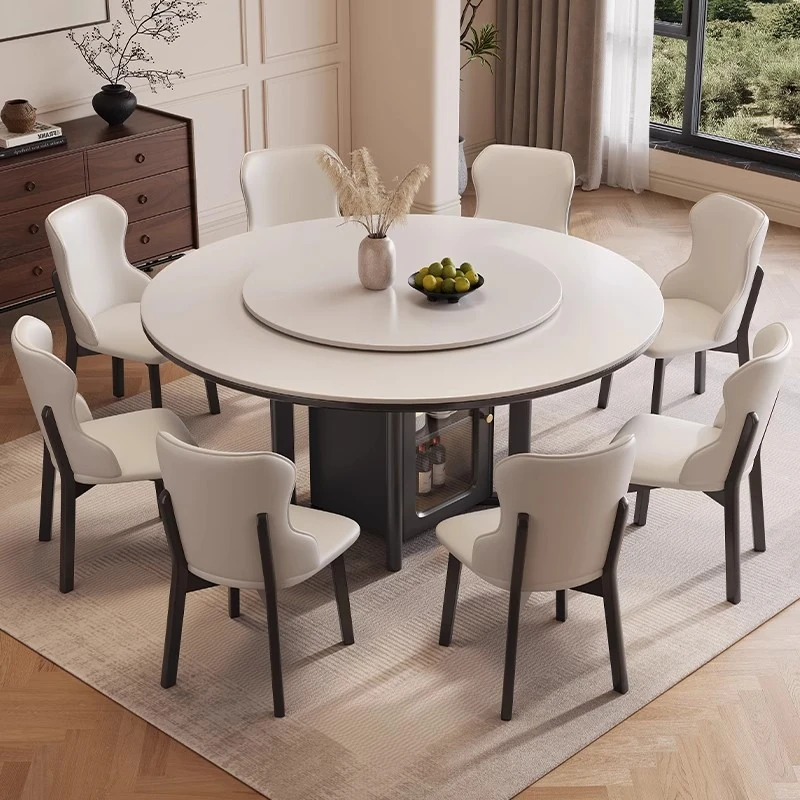 Modern Chinese Style Round Dining Table - Minimalist Luxury Design for Home Use, Multi-functional Storage, Perfect for Dining and Hotels