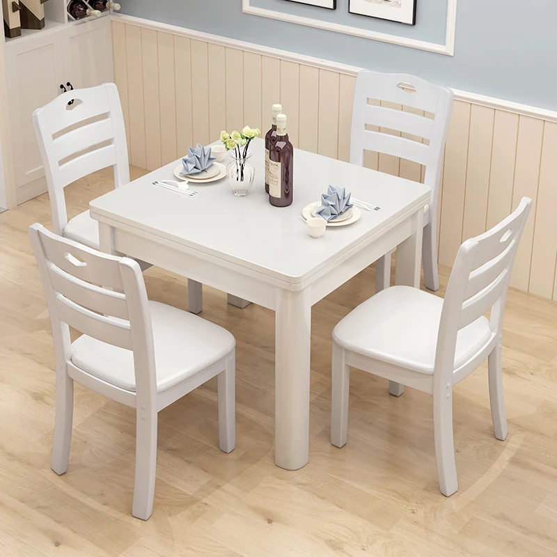 Modern Minimalist Solid Wood Dining Table and Chair Set - 80cm Square White Table for 4, Perfect for Small Spaces and Home Use