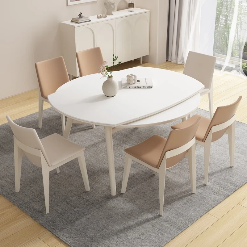 Creamy Wind Rock Panel Dining Table Set - Luxurious Oval Dining Table and Chair Combination for 6-8 People, Perfect for Small Spaces, Elevate Your Home Decor with Elegant Design