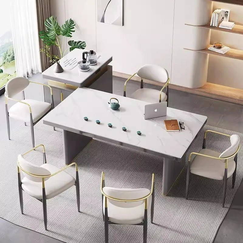 Modern Rock Slab Tea Table and Chair Set - Stylish Living Room Tea Table with Electric Kettle, Rotating Dining Table for Home - Perfect for Kung Fu Tea Ceremonies and Family Gatherings