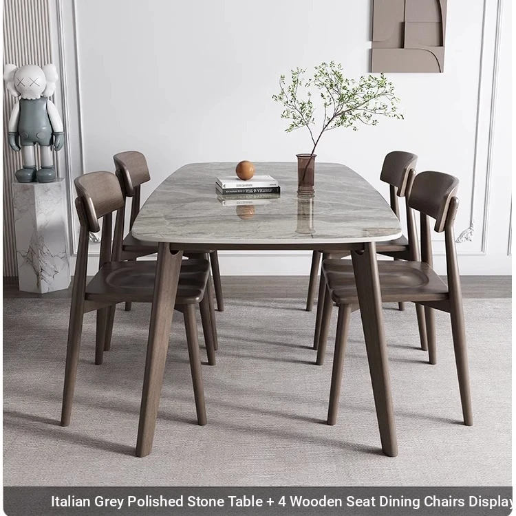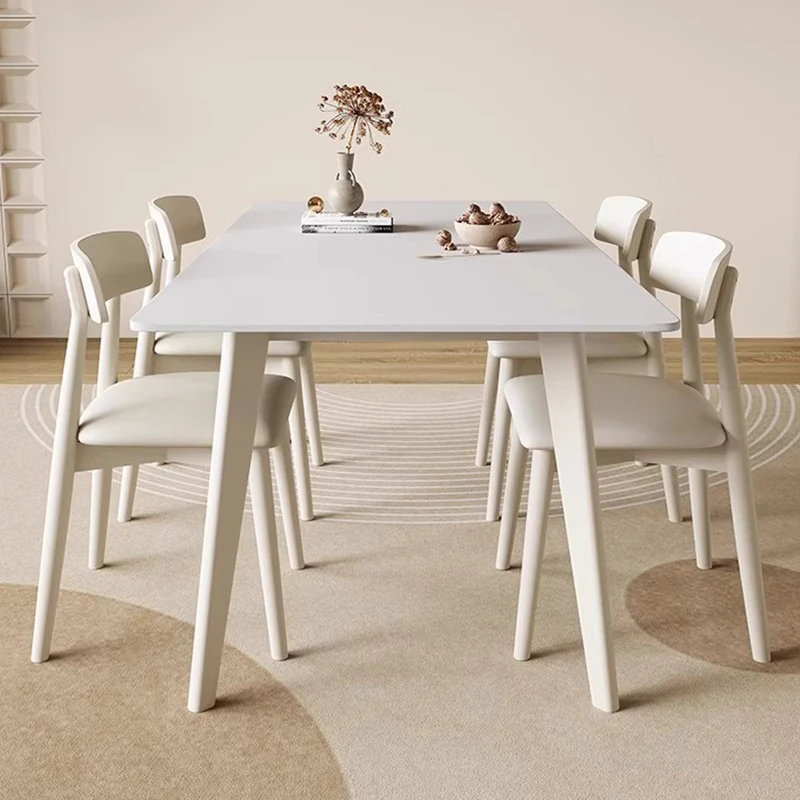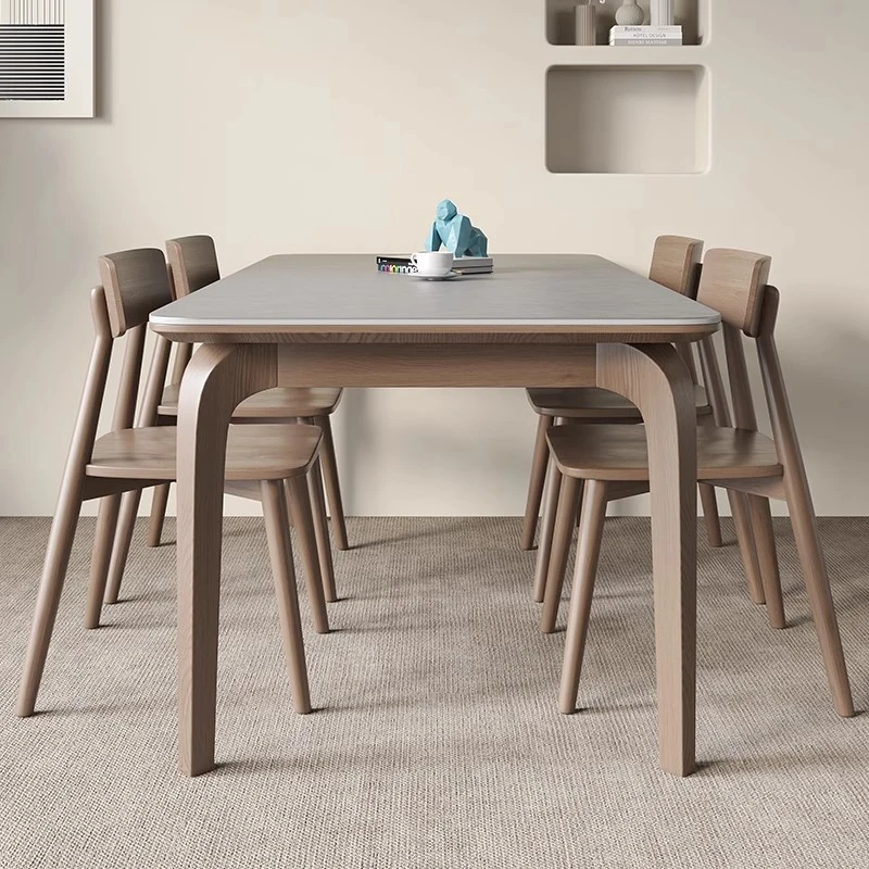 Modern Minimalist Solid Wood Dining Table with Rock Plate - Rectangular Table and Chair Set for Small Nordic Homes