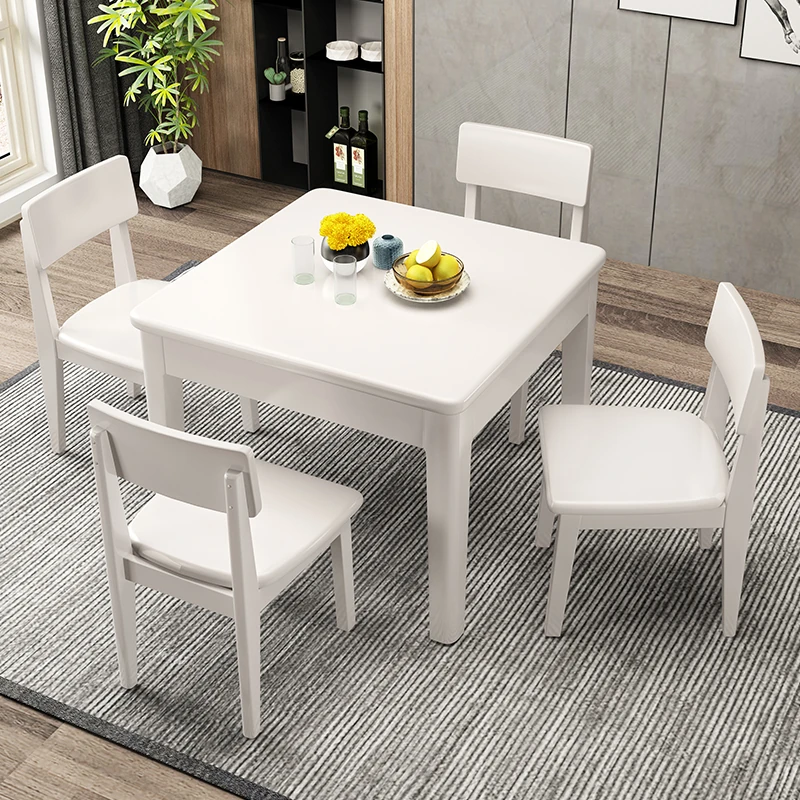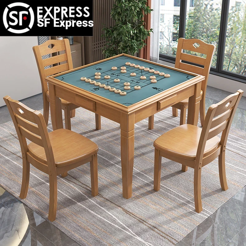 Modern Minimalist Solid Wood Mahjong and Dining Table - Versatile Square Table for Home Use, Perfect for Dining, Chess, and Card Games - Complete Set with Chairs