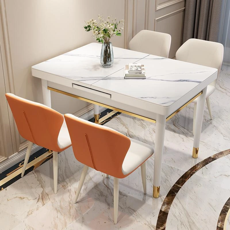 Elegant Glossy Rock Panel Dining Table - Foldable and Expandable Rectangular White Solid Wood Table for Small Spaces, Perfect for Induction Cooktops. Ideal for Modern Homes!