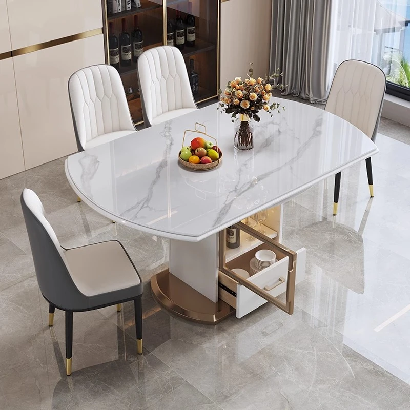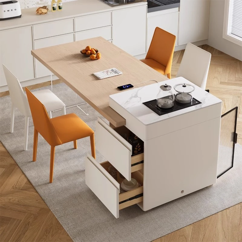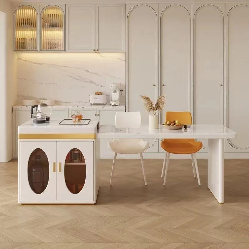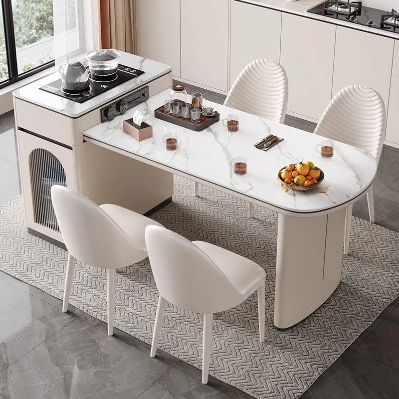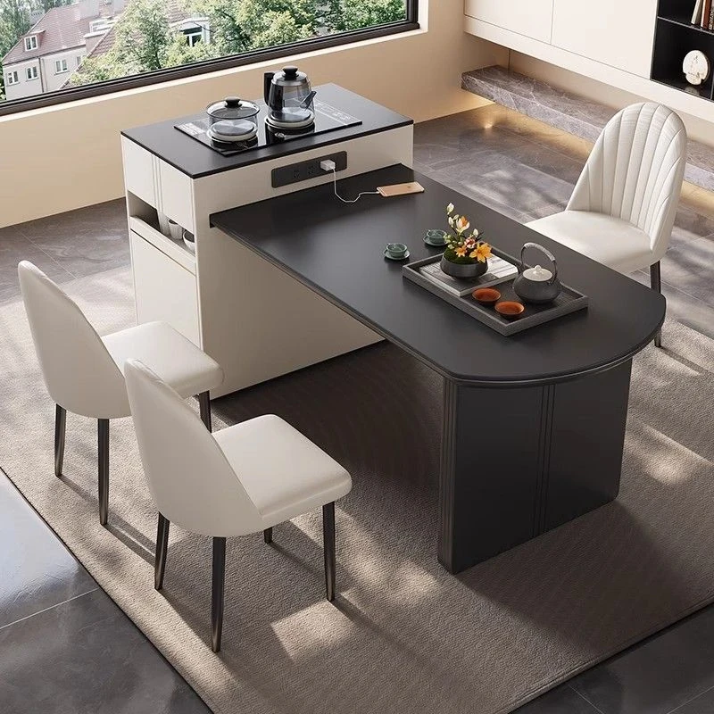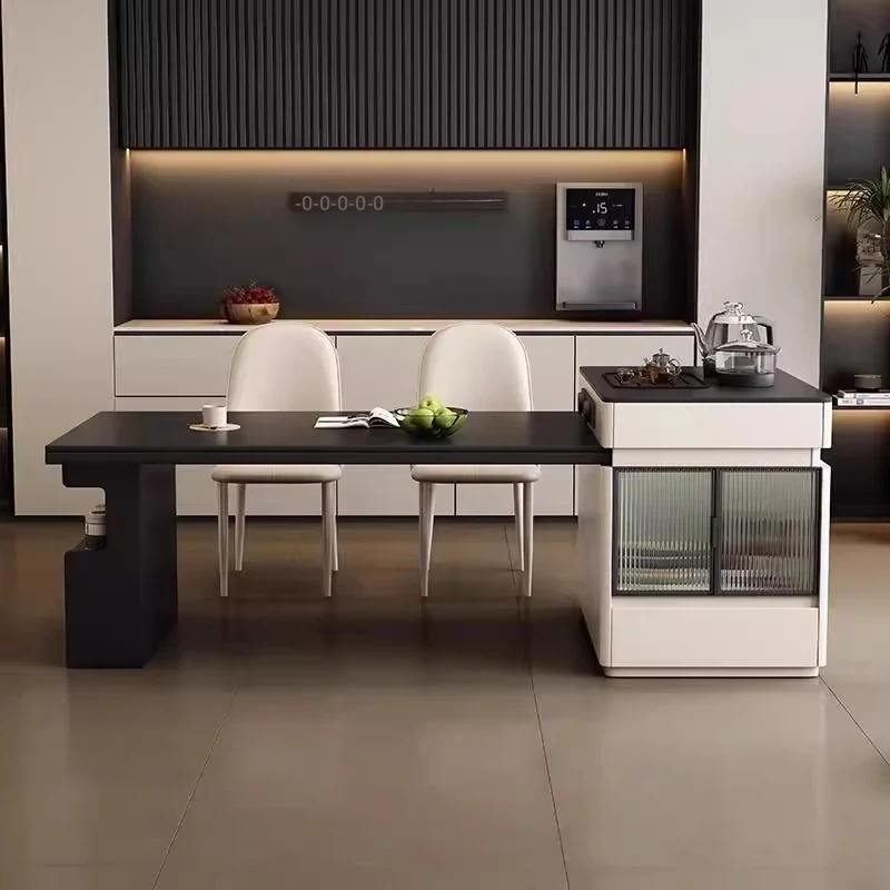 Modern Expandable Island Dining Table - Sleek and Luxurious Multi-Functional Tea Table for Home Use, Perfect for Contemporary Spaces.