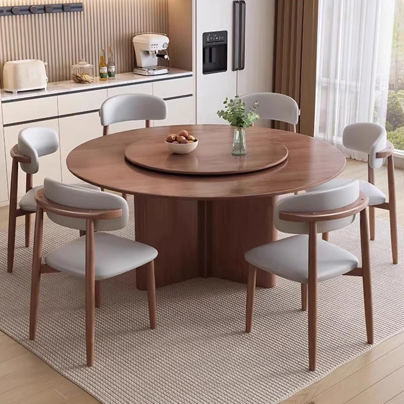 Modern Simple Solid Wood Dining Table and Chair Set with Lazy Susan - Elegant Round Dining Table for Small Spaces, Perfect for Home and Restaurants