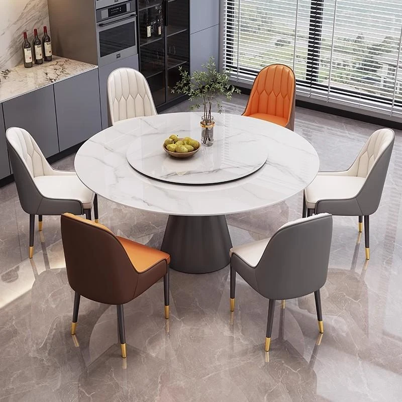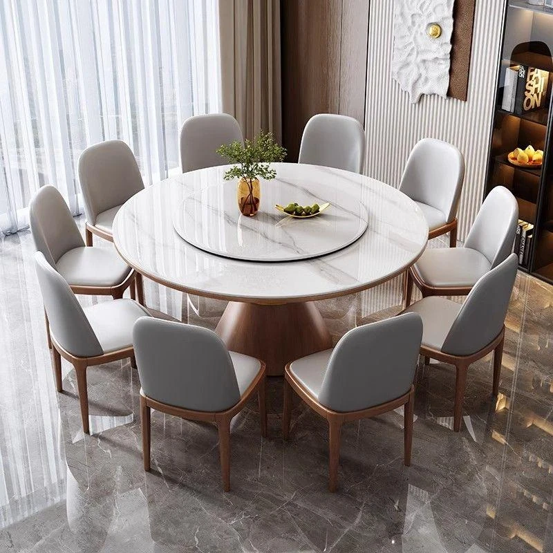 Elegant Italian Style Ceramic Dining Table and Chair Set – Modern Minimalist Round Table for Home and Restaurants with Rotating Tray – Perfect for Stylish Dining Experiences
