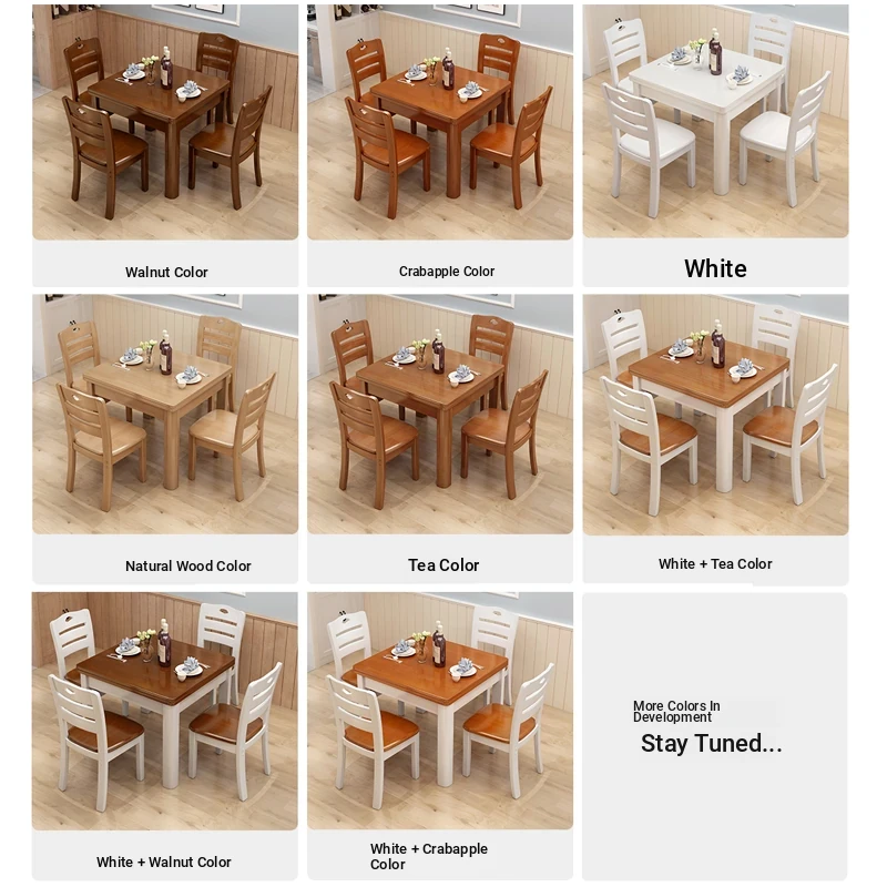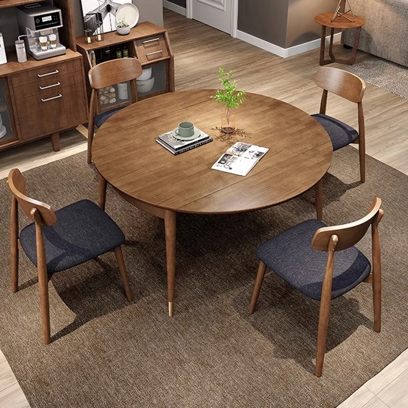 Nordic Solid Wood Dining Table and Chair Set – Space-Saving, Foldable and Expandable for 4-6 People, Versatile Square and Round Design Ideal for Small Homes