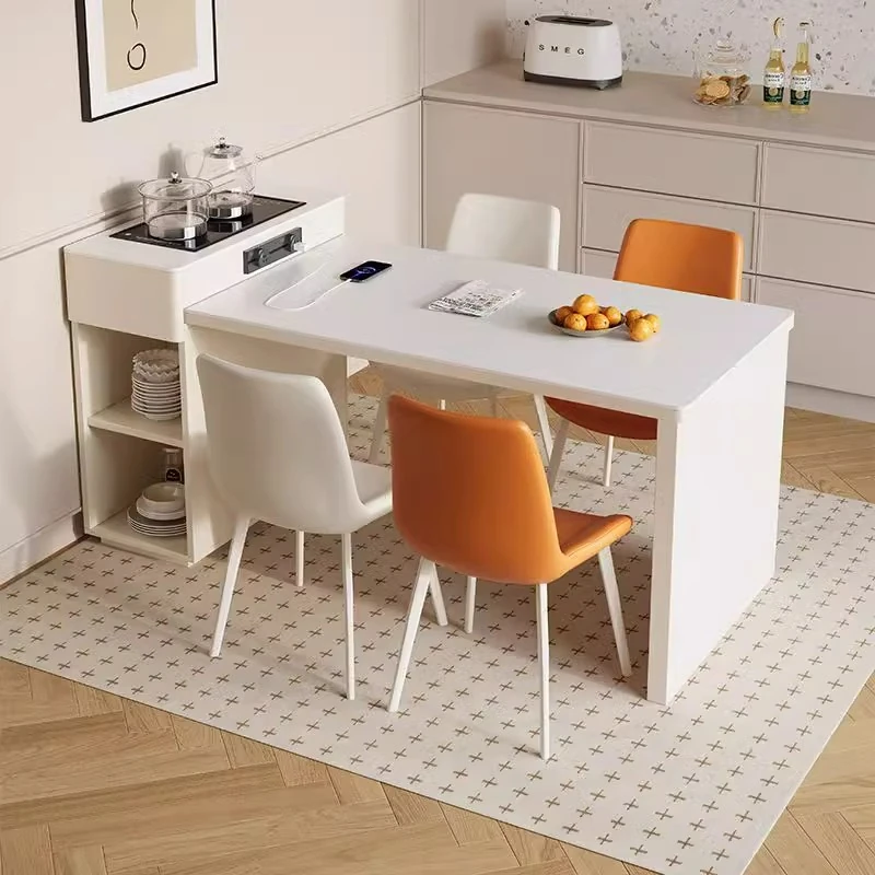 2024 New Minimalist Expandable Dining Table with Rotating Induction Cooker - Space-Saving Foldable Table for Small Homes