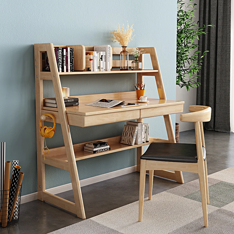 Nordic Solid Wood Desk and Bookshelf Combo - Multi-Functional Modern Minimalist Computer Desk for Home Bedroom, Perfect for Students and Writing Tasks