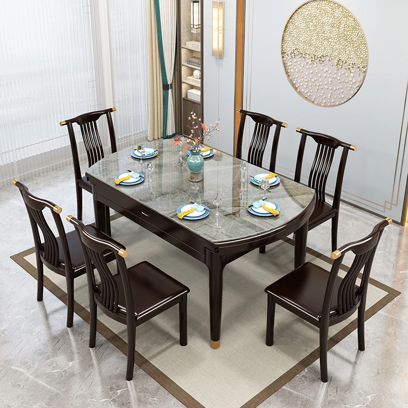 Modern Chinese Solid Wood Glossy Dining Table with Expandable and Foldable Design - Versatile Square and Round Dining Table Set for Home Use