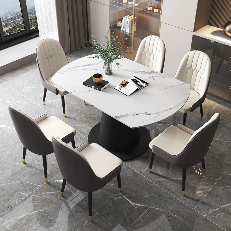 Creamy Island Dining Table – Modern Minimalist Expandable Rock Slab Table for Small Spaces, Perfect for Home Use