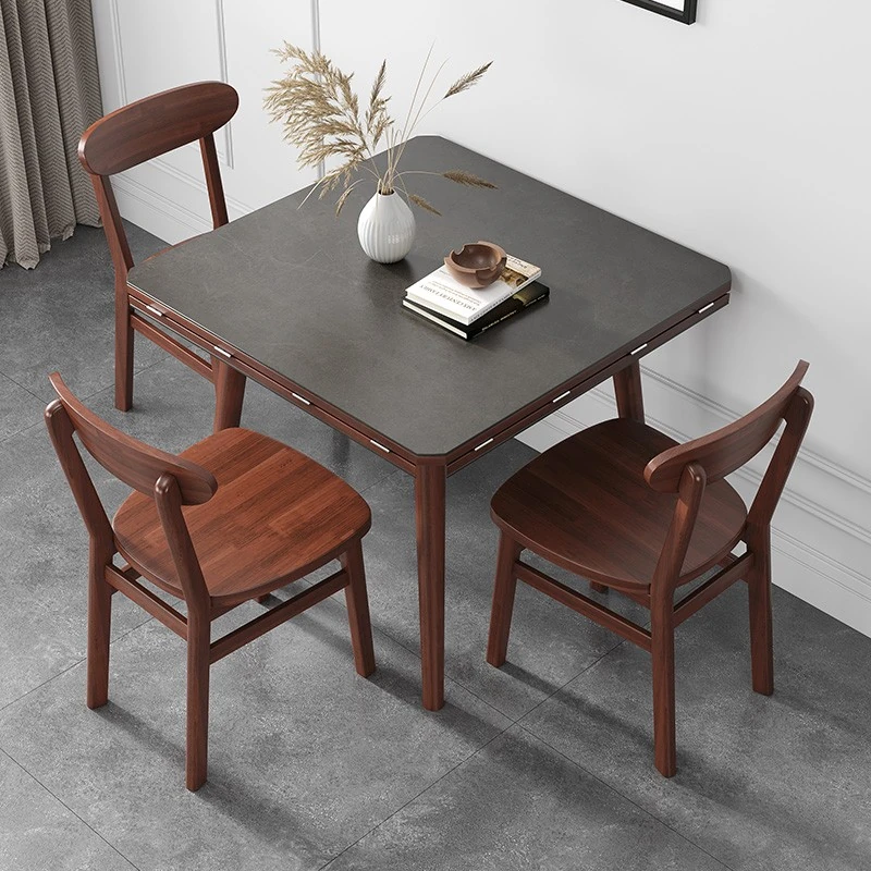 Modern Minimalist Expandable Round Dining Table for Small Spaces, Solid Wood Square Table with Induction Cooker - Perfect for Home Use