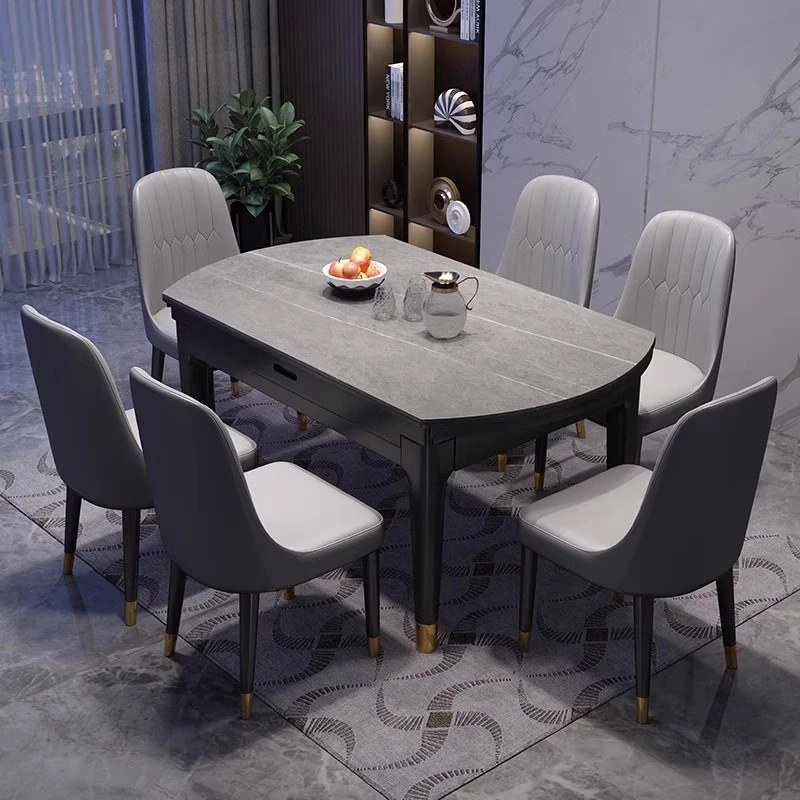 Modern Minimalist Italian-Inspired Luxury Foldable Dining Table and Chair Set - Versatile Expandable Round Table with Rotating Tray for Home Use