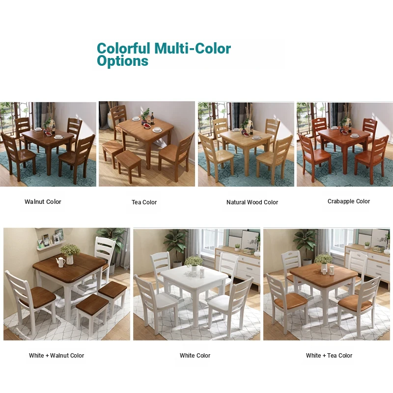 Modern All-Wood Folding Dining Table and Chair Set – Space-Saving, Versatile Design for Small Homes, Expandable Round and Square Dining Table for Family Meals
