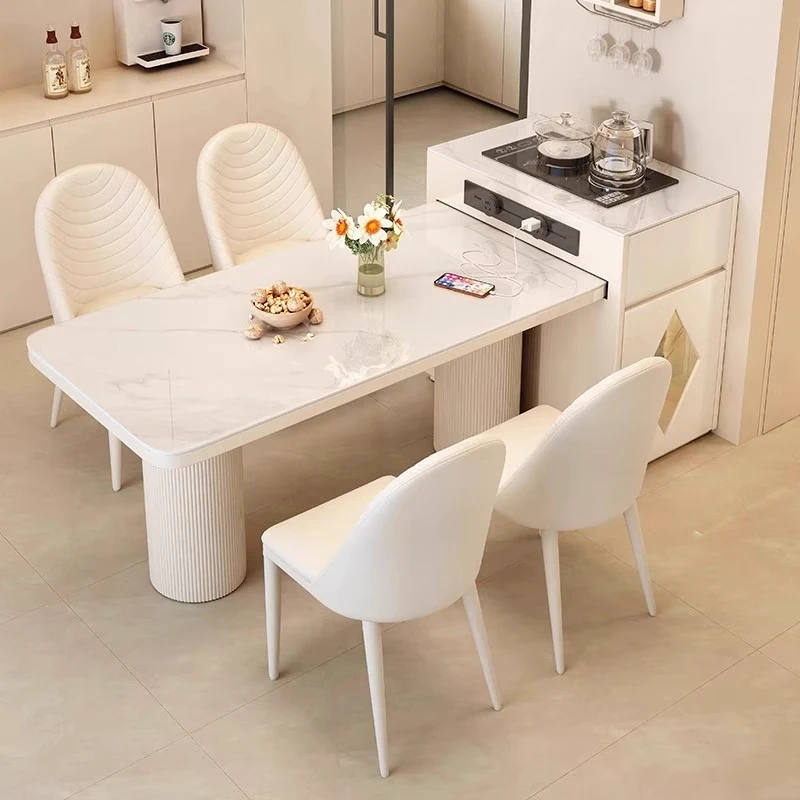 Modern Minimalist Cream Island Dining Table - Versatile Expandable Rock Plate Tea Table for Small Spaces, Perfect for Home Use and Entertaining in Your Living Room