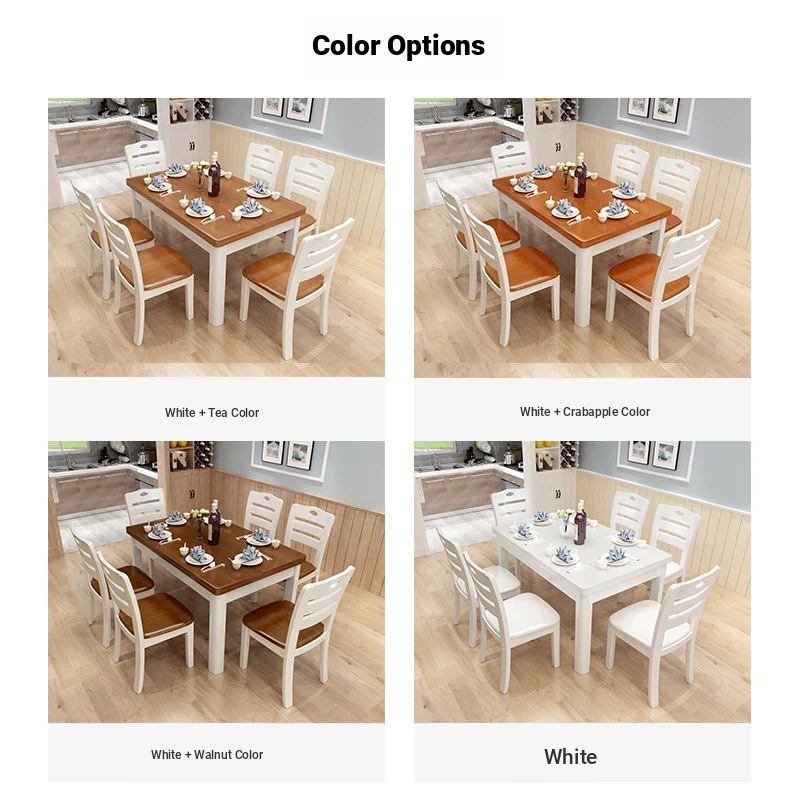 French Vintage Solid Wood Dining Table Set - Versatile Round and Square Table for Small Spaces, Extendable Retro Design with Chairs for Home Use