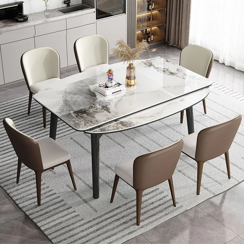 Modern Minimalist Luxury Folding Dining Table for Small Spaces - Versatile Square and Round Design with Elegant Stone Surface, Perfect for Living Rooms and Dining Areas