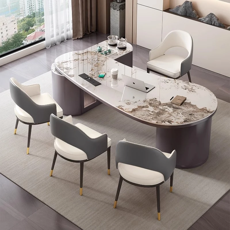 Modern Luxury Rock Slab Tea Table with Storage and Rotating Features - Elegant Office Style, 2025 New Arrival