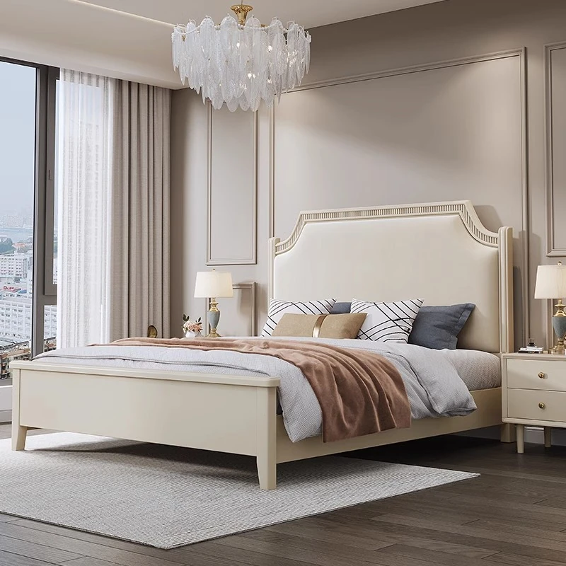 Elegant French Cream Soft Bed with Storage - Solid Wood, 1.5m & 1.8m Sizes for Couples - Luxurious Design Perfect for Master Bedrooms