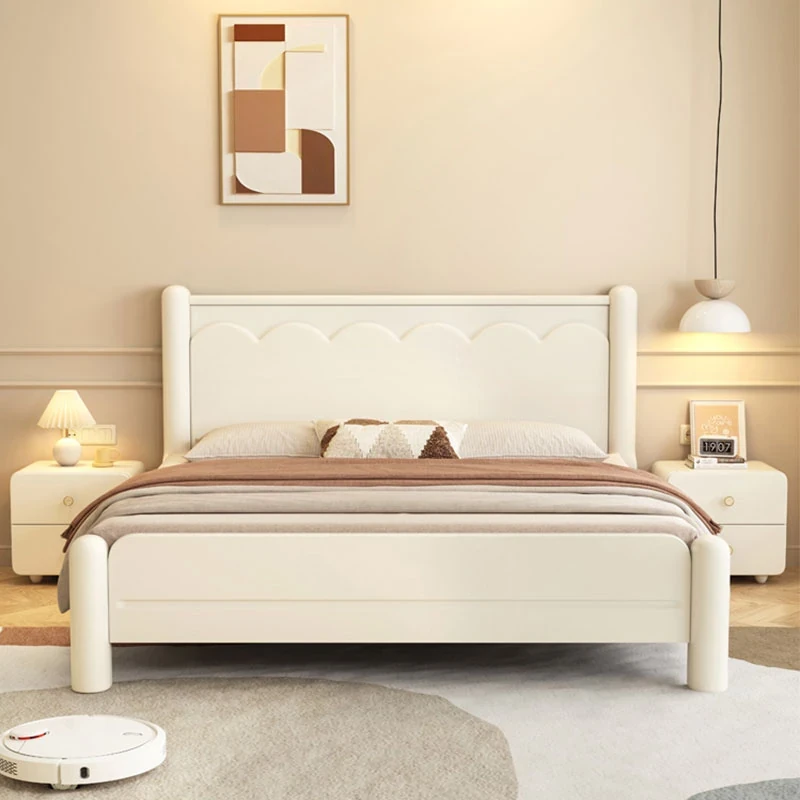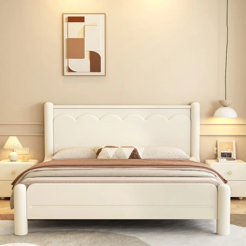White Solid Wood Bed - Cream Style for Small Homes, 1.5m Cloud Storage Double Bed, Modern Minimalist 1.8m Wedding Bed, Perfect for Cozy Spaces