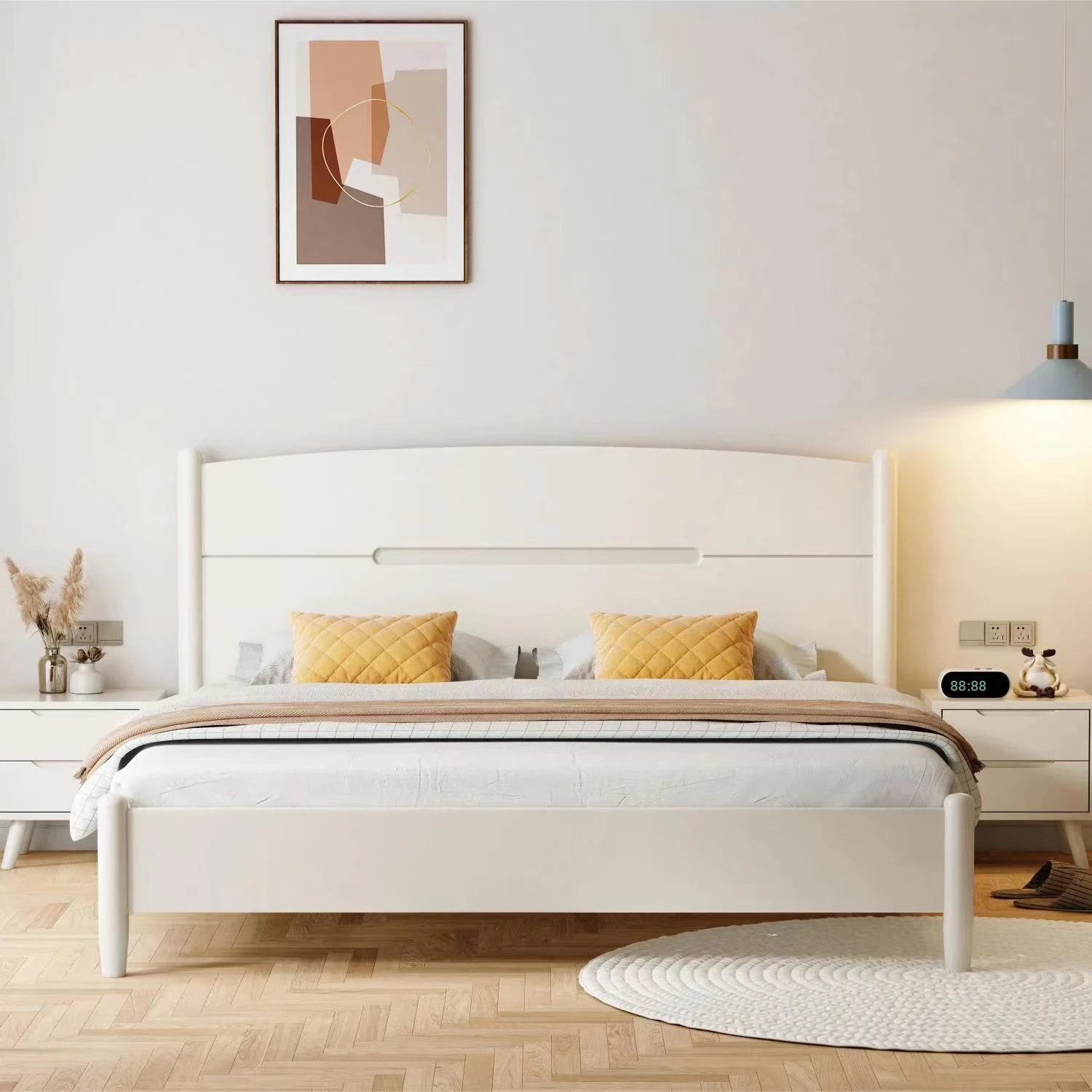 Modern White Solid Wood Bed - Creamy Finish, 1.5m & 1.8m Options, Stylish Minimalist Design, Perfect for Couples, Nordic Storage Wedding Bed for Your Bedroom