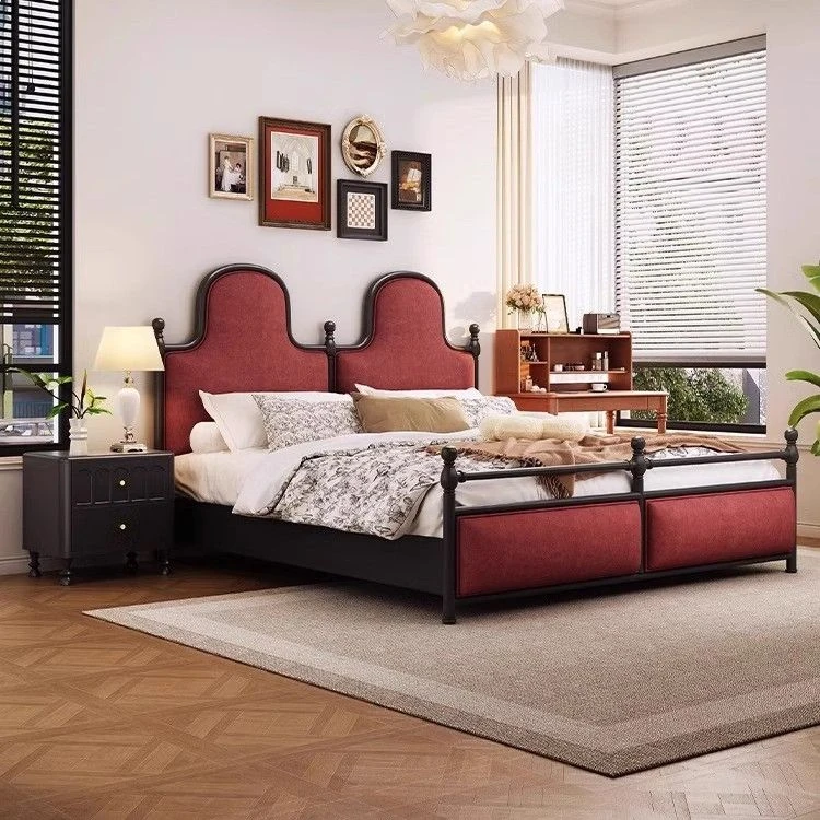 Vintage French-Style Solid Wood Bed - Minimalist Retro Fabric Double Bed for Guesthouses, 1.5m & 1.8m King Size, Perfect for Master Bedrooms and Newlyweds