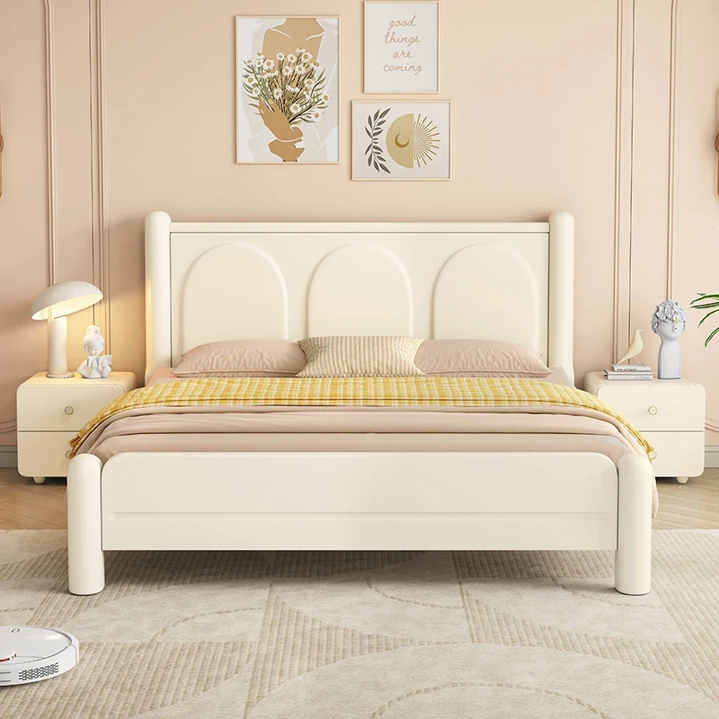 Creamy White Solid Wood Bed for Small Homes - Elegant 1.5m & 1.8m Princess Double Bed for Master Bedrooms, Perfect for Newlyweds and Cozy Spaces.