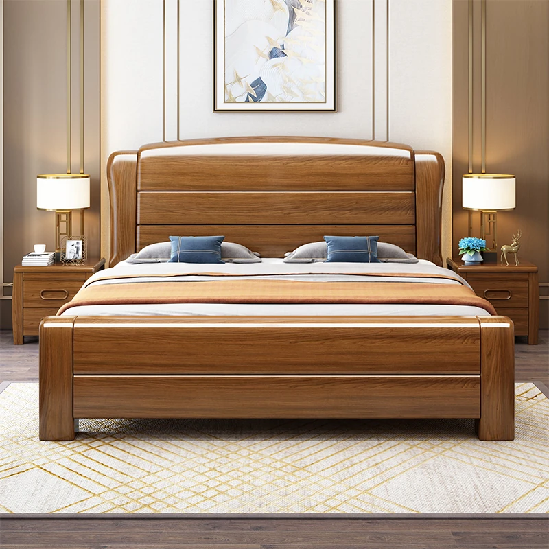 Modern Chinese Walnut Solid Wood Bed - 1.8m Double Bed for Home, 1.5m Economical High-Box Storage Bed for Bedrooms, Stylish and Functional Design